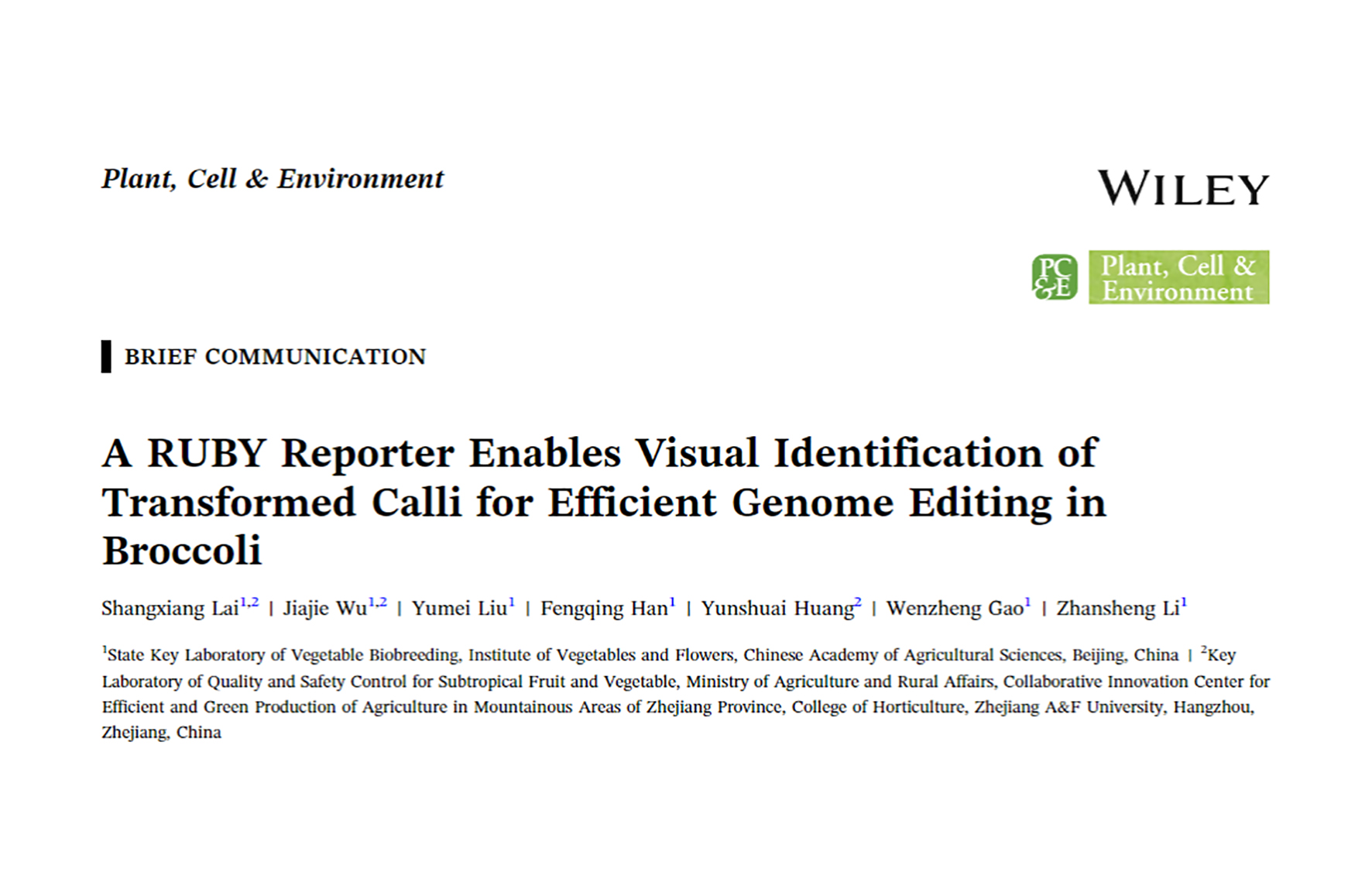 PC&E | The Broccoli and Cabbage Group at the Institute of Vegetables and Flowers Establishes an Efficient Visual Gene Ed...